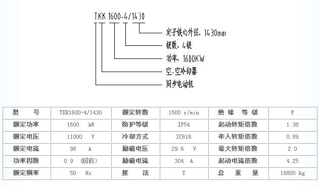 TKK1600-4/1430 11KV 大型四極三相同步電動(dòng)機(jī)可廣泛用于石油、化工、電力等行業(yè),用于拖動(dòng)風(fēng)機(jī)、水泵、壓縮機(jī)等機(jī)械,要求使用環(huán)境無(wú)酸、堿等腐蝕性氣體,電動(dòng)機(jī)額定頻率為50HZ,額定功率因數(shù)為0.9(超前)。