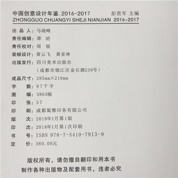 由北京中外視覺藝術院、中外設計研究院、中國創(chuàng)意同盟網(wǎng)(ideatom.com)聯(lián)合主辦的大型年度出版物——《中國創(chuàng)意設計年鑒·2016-2017》已于2018年1月由四川美術出版社正式出版發(fā)行,ISBN書號:978-7-5410-7913-9,中國版本圖書館CIP數(shù)據(jù)核字(2018)第021335號。 本屆《年鑒》經(jīng)過長達一年多的編審工作,共收錄中國大陸及港澳臺地區(qū)的3000余位設計師的精品力作。本屆《年鑒》全書厚達6厘米,重約4公斤,“厚重”之中既承載著創(chuàng)意的理念形態(tài)與設計的物質(zhì)形式,也見證著《中國創(chuàng)意設計年鑒》編委會多年來的持續(xù)堅守。